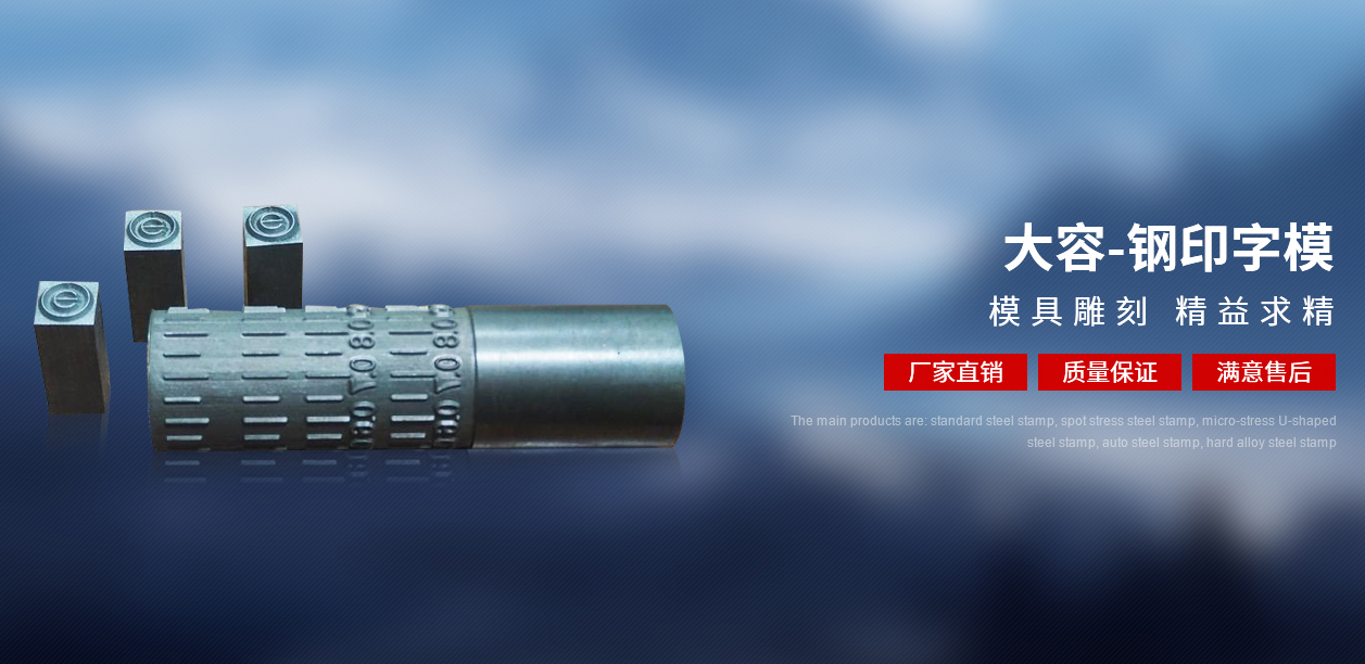 我们主要生产各种低应力钢印,微应力钢印,汽车零件专用钢印,高品质钢印字模,精密冲压模具、工装夹具、工厂自动化装备的设计与制造,并承接非标机械零部件和金属冲压件的加工。产品严格按照德国DIN标准生产制造。在2009年通过 ISO9001:2008质量管理体系标准,2011年注册大容钢印商标,成为国内优先拥有注册商标专业生产钢印字模钢制打码工具企业。